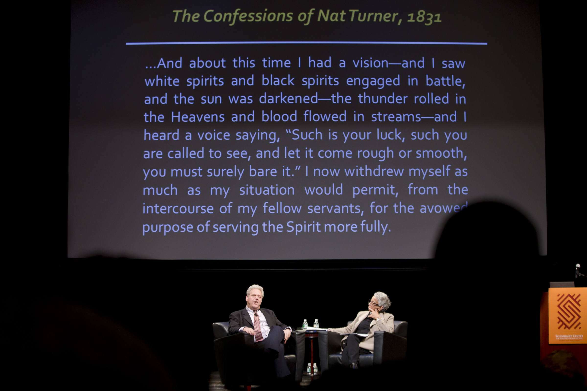 On November 4, a full auditorium joined Anthony E. Kaye, Professor of History at Pennsylvania State University and writer and artist Thulani Davis, Assistant Professor of Afro-American Studies at the University of Wisconsin-Madison, as they engaged in a fascinating conversation placing Nat Turner in a broad context of biblical prophets and African American religion, slave rebels and slave rebellions across the Atlantic world.