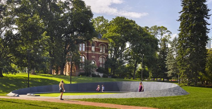 Image Credit: Visitors at the Memorial to Enslaved Laborers. Photo: Alan Karchmer. Courtesy: Höweler + Yoon Architecture.